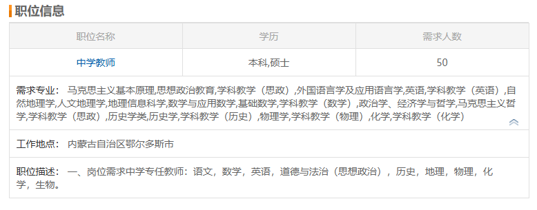 鄂尔多斯市东胜区赴北京意向性招聘教师公告