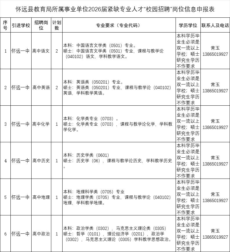 2025年安徽蚌埠怀远第一中学校园招聘教师(20人)