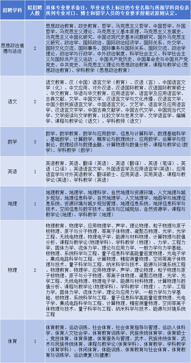 因学校教育教学工作需要,闽江学院附属中学2026年拟招聘以下学科教师: