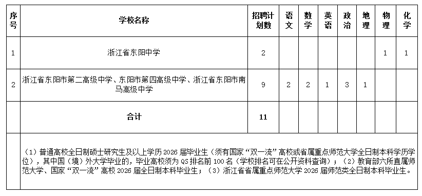 1.政治素质好,遵纪守法,品行端正,身心健康,有志于长期在东阳市从事教育教学工作,有较强的敬业精神和团队协作精神,工作服从组织安排和调配,具有中华人民共和国国籍。