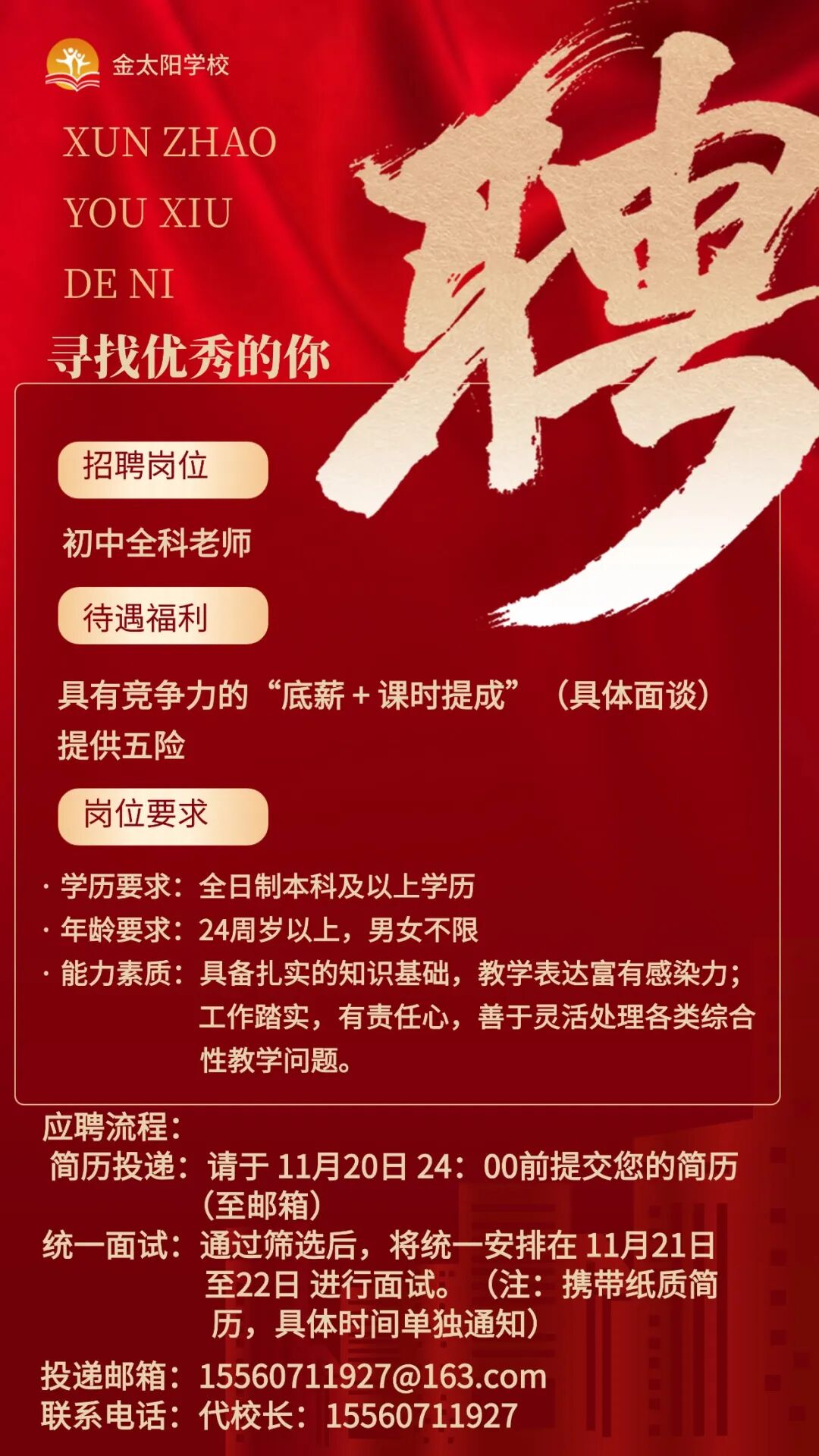 面试时间:11月21日—22日